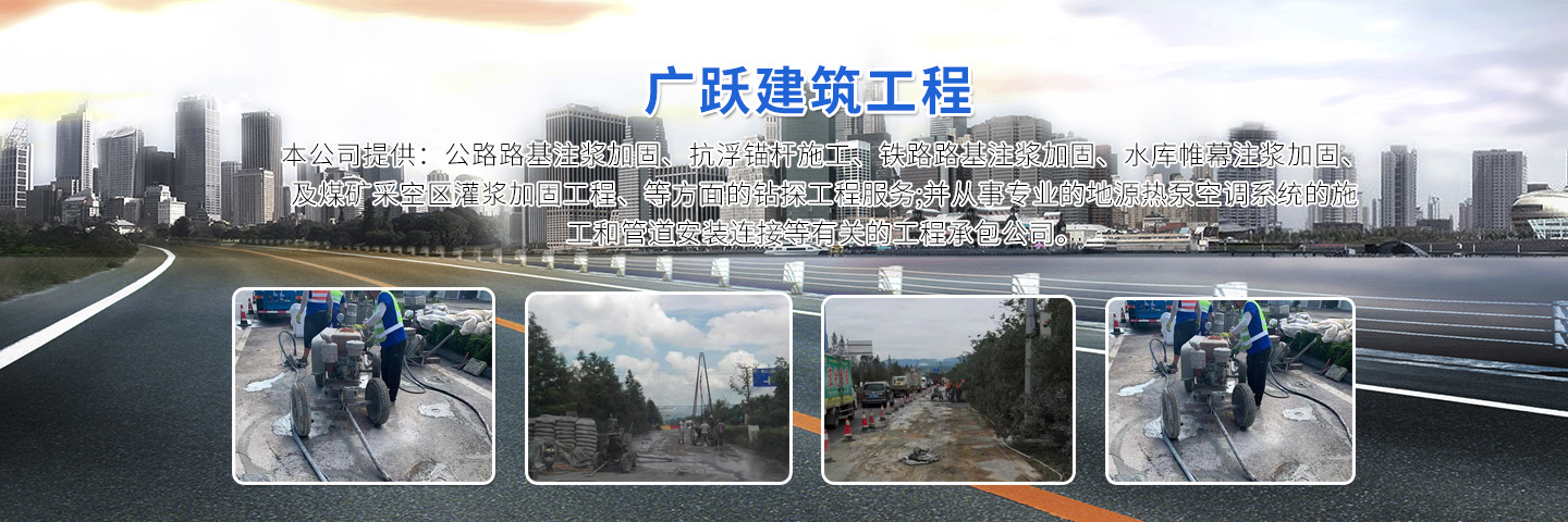 徐州廣躍建筑工程有限公司,公司成立于2010年,有專業(yè)施工人員50人,從事專業(yè)加固注漿施工。 本公司提供:公路路基注漿加固、抗浮錨桿施工、鐵路路基注漿加固、水庫帷幕注漿加固、及煤礦采空區(qū)灌漿加固工程、等方面的鉆探工程服務(wù);并從事專業(yè)的地源熱泵空調(diào)系統(tǒng)的施工和管道安裝連接等有關(guān)的工程承包公司。 公司成立以來一直專注于地質(zhì)鉆井工作,技術(shù)力量雄厚、設(shè)備先進(jìn):擁有專業(yè)的機(jī)械地質(zhì)鉆井精英隊(duì)伍;并具有GSY --150鉆機(jī)30余臺、GSY---200鉆機(jī)20余臺、專業(yè)回填封孔砂漿泵4臺等機(jī)械設(shè)備。公司稟承“優(yōu)質(zhì)的工程、優(yōu)惠的價(jià)格、優(yōu)良的售后服務(wù)”的經(jīng)營理念,以“客戶滿意”為原則,著力打造一支高效、專業(yè)、信譽(yù)的工程服務(wù)團(tuán)隊(duì)。 具體服務(wù)項(xiàng)目:工程施工降水井、水源空調(diào)井、地源熱泵井、機(jī)鉆深井(工廠專用井)、石頭井、飲用水井、農(nóng)田井、地基降水處理、大型基坑降水、地下室、車庫以及橋梁注漿加固等業(yè)務(wù)。可用于廠生產(chǎn)用水,機(jī)械冷卻用水和生活用水,用水量可根據(jù)貴公司的需求量身訂做。